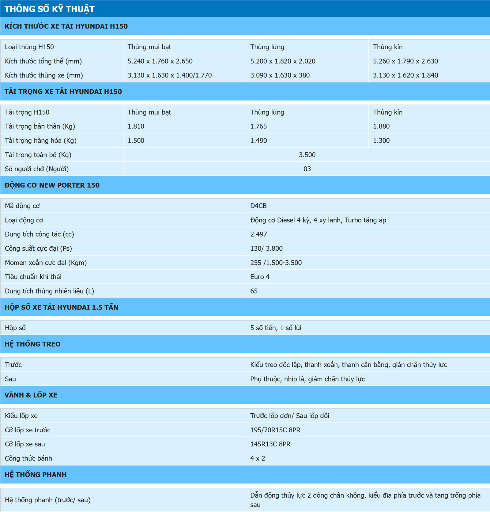 Hyundai Porter H150 – mạnh mẽ bền bỉ.